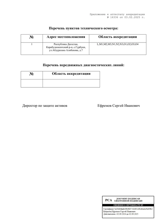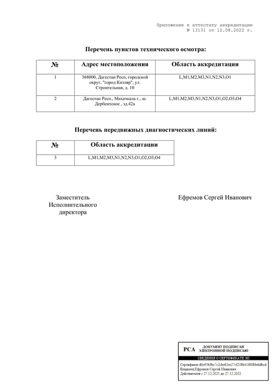 Операторы, должны в обязательном порядке иметь аттестат аккредитации, в котором указаны категории транспортных средств, на проведение технического осмотра которых, получено разрешение (область аккредитации). Аттестат аккредитации действует бессрочно.